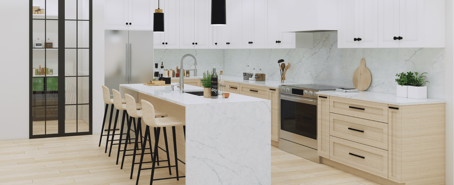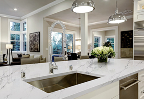 Whether it’s natural stone or engineered quartz, solid surface stone countertops dramatically enhance the appeal and practicality of a kitchen. See our in-stock granite, quartzite, and engineered quartz slabs and let us help you select the perfect option. Simple contemporary designs or intricate, mitered waterfall edges, trust Terra Tile & Marble for design to installation to perfect realization.