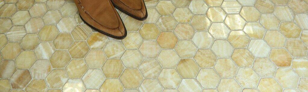Honey Onyx: A beautiful light gold onyx marble that will brighten and cheer up any room. Its partially translucent nature gives it an almost glass like appearance. Available in multiple sizes and mosaics.