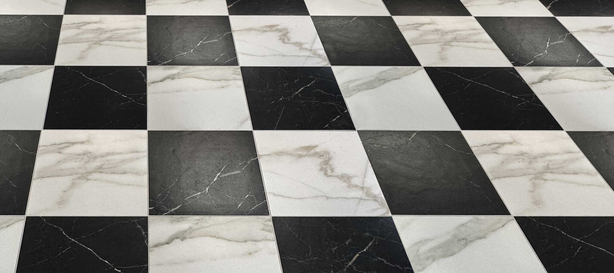 Terra Tile offers several great ways to design with it—either traditional matte black and white or exceptionally crafted marble-look ceramic tiles. The latter features patterning and raised textural veining for added realism. Ten new colors and textures offer design flexibility and endless creativity for your “palace” all in an easy-to-install and maintain 12″x12″ ceramic tile.